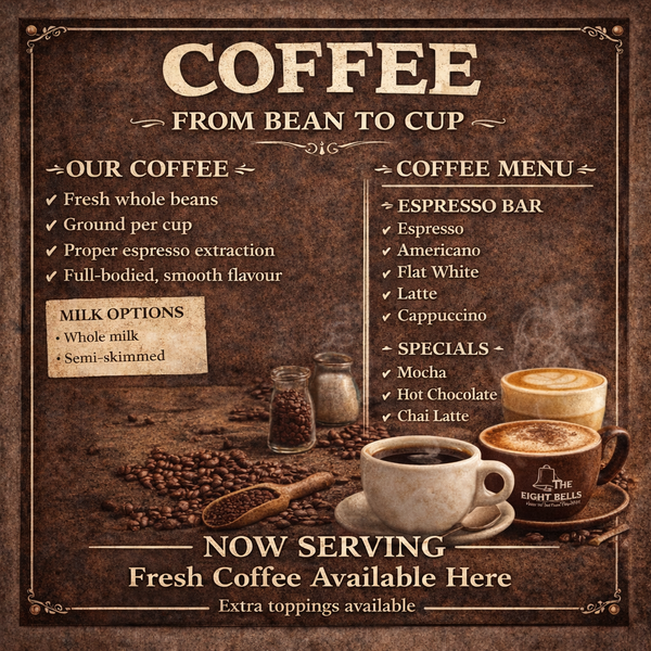 From a strong espresso to a perfectly balanced latte, our coffee menu is built around quality, consistency, and great taste — every single time.